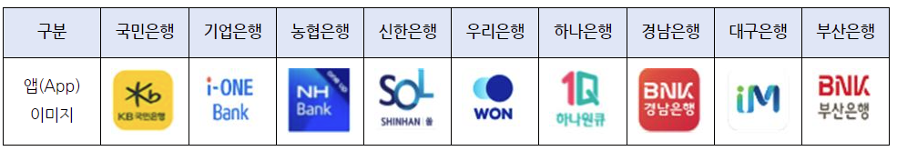 시중은행 앱을 통해 비대면 신청·접수 : 온라인 신청 ( 아래 화면 은행 아이콘 클릭 )