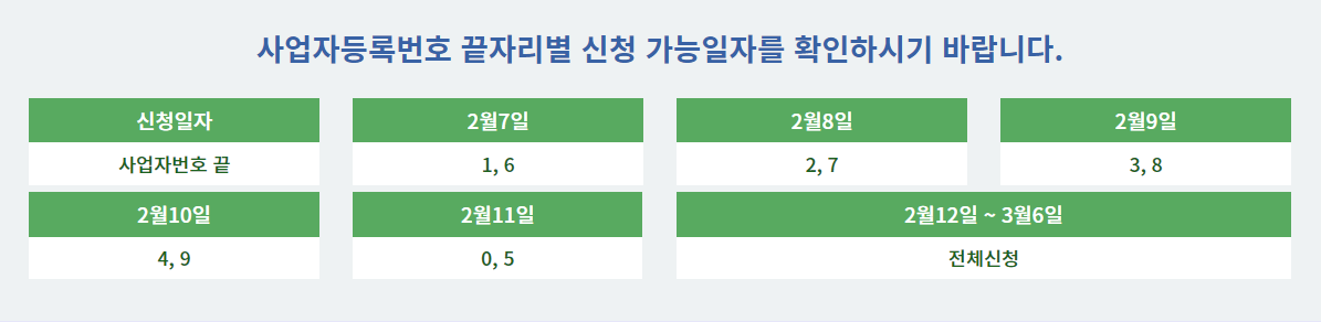 사업자등록번호 끝자리별 신청 가능일자를 확인하시기 바랍니다.