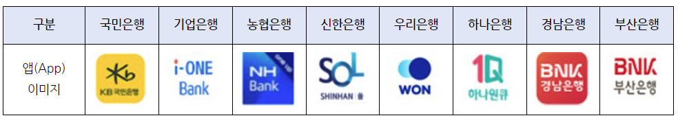 시중은행 앱을 통해 비대면 신청·접수 : 온라인 신청 ( 아래 화면 은행 아이콘 클릭 )