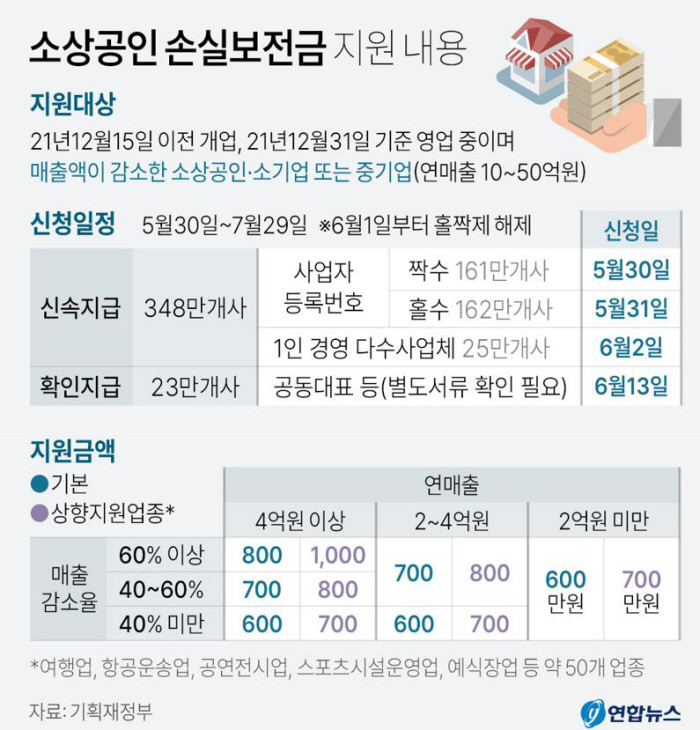 공동대표 운영 등 별도로 서류확인이 필요한 사업체와 연매출 50억원 이하 중기업 등 23만개에 대해서는 6월13일부터 확인지급을 시작할 예정이다.